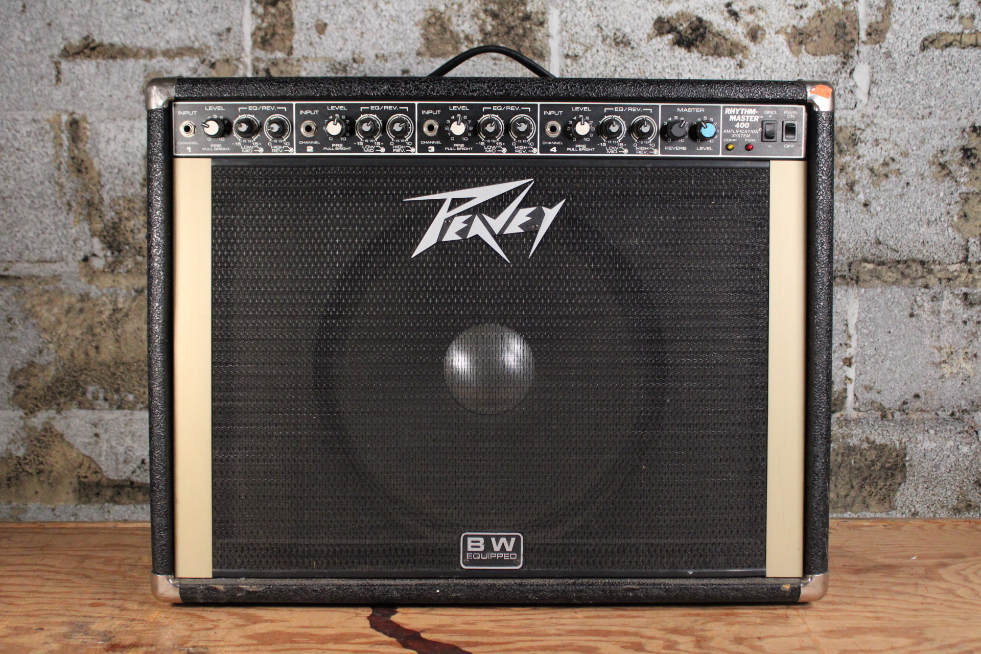 Great sounding Peavey Rhythm Master 400 Guitar Amp! This has a single Peavey Black Widow 15" speaker! This thing is loud and proud!